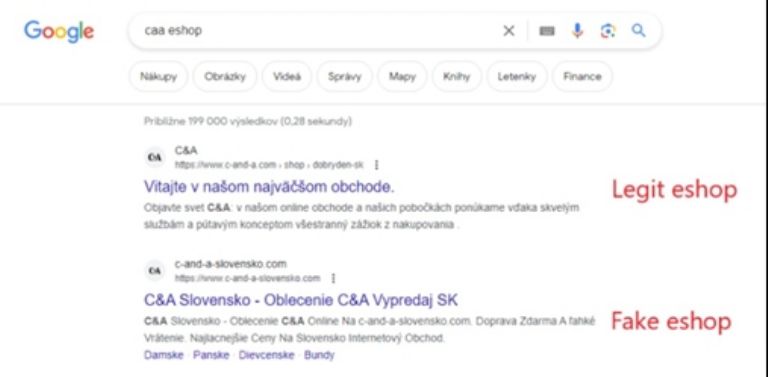 Suele comenzar con una solicitud de información personal durante un inicio de sesión o un proceso de compra falsos. Es posible toparse con estas tiendas electrónicas falsas al principio de una búsqueda en Google o Bing, donde se presentan con dominios de aspecto creíble, a menudo utilizando TLD comunes como .com, .cz o .sk.