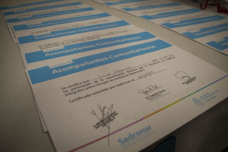Durante el encuentro se entregaron certificados a operadores que realizaron la capacitación, que trabajan en diferentes espacios de asistencia comunitaria: Casa Esquina Libertad, Casa Pueblo, Red Puentes, Hogar de Cristo, Dispositivo Sayani, operadores de la Dirección de Niños en Conflicto con la Ley Penal y del Centro Integral de Salud. Para el próximo año se avanzará en capacitar a operadores del interior provincial.