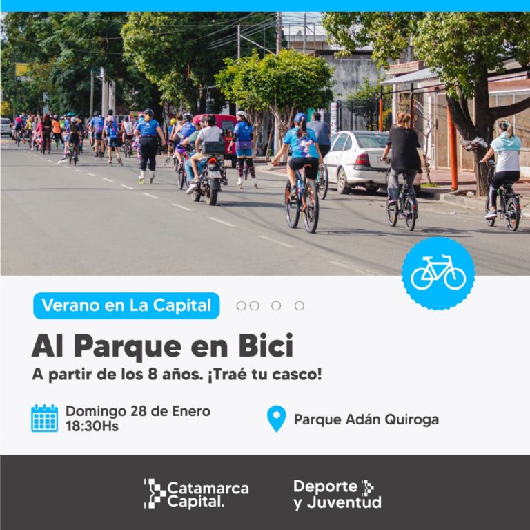 La convocatoria es en el Parque Adán Quiroga desde las 18.30. Será destinado para chicos y chicas desde los 8 años. Un requisito primordial, llevar casco.