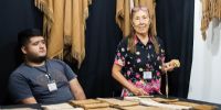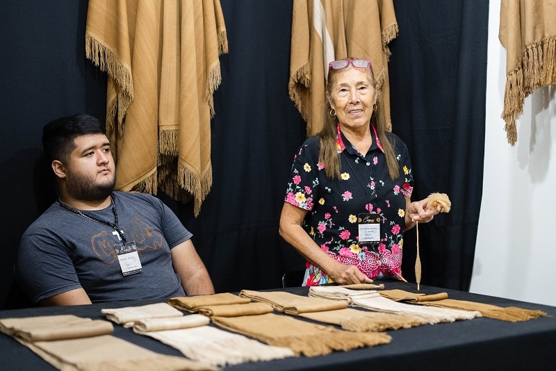 Quienes visiten la Feria Cortázar de la ciudad cordobesa también podrán encontrarse, en la carpa destinada a pueblos originarios y artesanías tradicionales, con la reconocida artesana textil de Fray Mamerto Esquiú, Guillermina Zárate que expone sus delicadas bufandas, ruana y ponchos de vicuña; con la tejedora de Belén Fátima Zabala Delgado quien desde su stand mostraba la técnica de hilado de vicuña y seda natural, las dos fibras con las que elabora finas prendas textiles.