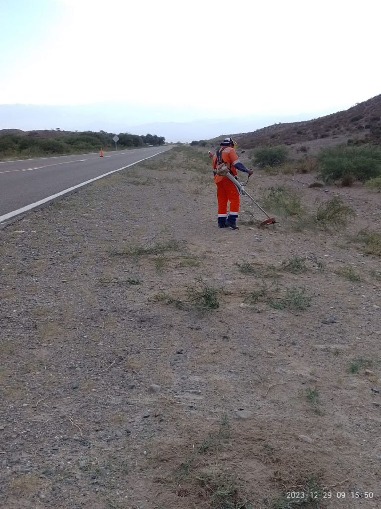 Vialidad Nacional informa que, el personal de la sobrestantia de Santa María se encuentra trabajando en la Ruta Nacional N° 40 Campo los Pozuelos - Punta Balasto km 4179/4190 en Santa María, en la recuperación de banquinas, desmalezado y encause de curso de agua.