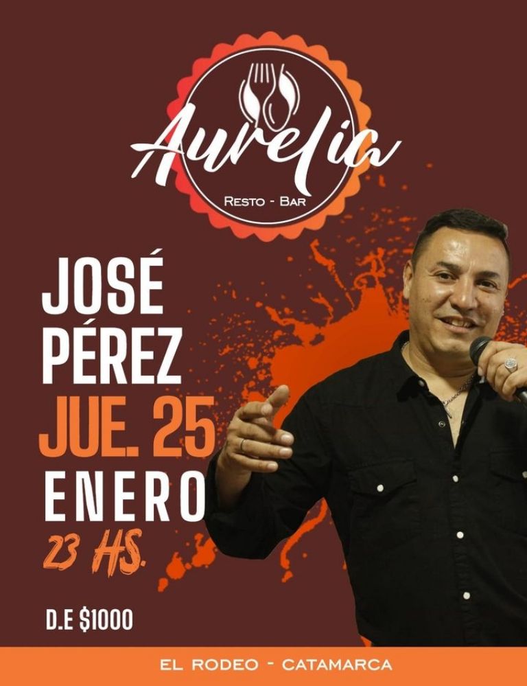- Actuación de José Pérez, a las 23 hs en Aurelia, El Rodeo, Ambato. Derecho de Espectáculo $ 1000.