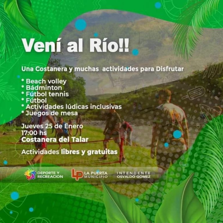 - "Vení al río", a las 17 hs. En Costanera en el Talar, La Puerta.