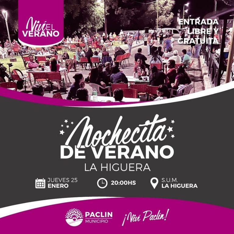 - Nochecita de Verano y Lotería familiar - La Higuera, con la actuación de Fede Miranda, Los Chamameceros de Paclín y Fuerza norteña, a las 20 hs. En el SUM Municipal - La Higuera, Paclín. Entrada libre y gratuita .