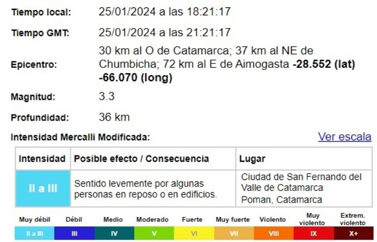 Cabe aclarar que, el jueves 25 de este mes, el epicentro de Catamarca volvió a vibrar con un sismo de 3.1° a 10 Km. de profundidad.