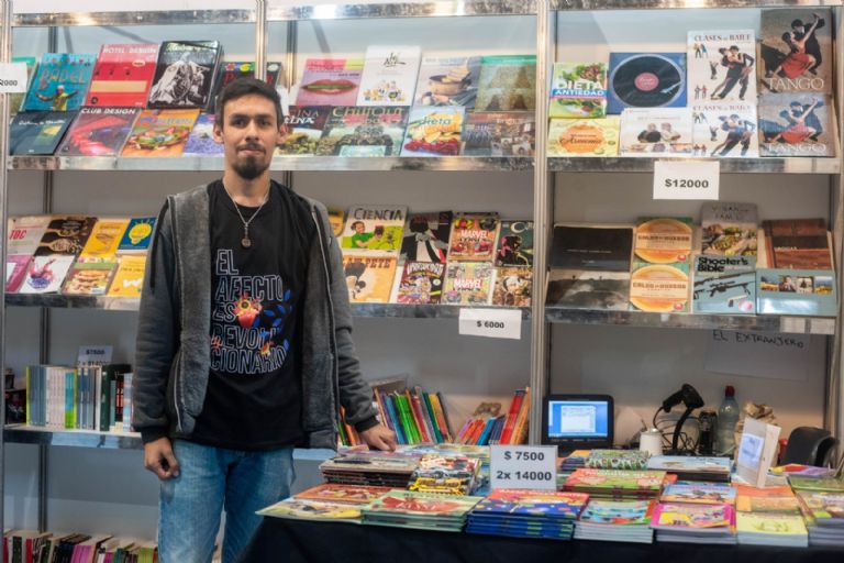 Rubén encargado de la librería de Catamarca “El Extranjero”, contó que hace dos años aproximadamente abrió su librería y que es la segunda vez que participa en la feria, el stand funciona como una feria de libros con promociones de compra de dos ejemplares con importantes descuentos.