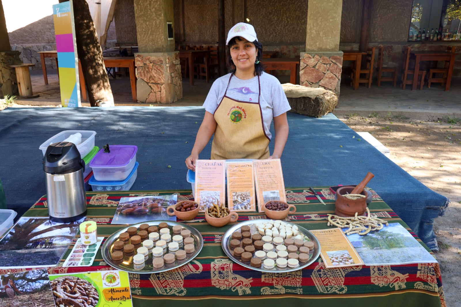Uno de esos talleres es el que realizó el emprendimiento Molinos de Norte, mediante una charla y degustación de productos regionales en la Casa de la Puna y en el Pueblo Perdido de la Quebrada. De esta forma, la gente pudo disfrutar de una degustación de frutos nativos mediante alfajores de chañar, mistol y algarroba, además de la añapa elaborada con harina de algarroba y patay.