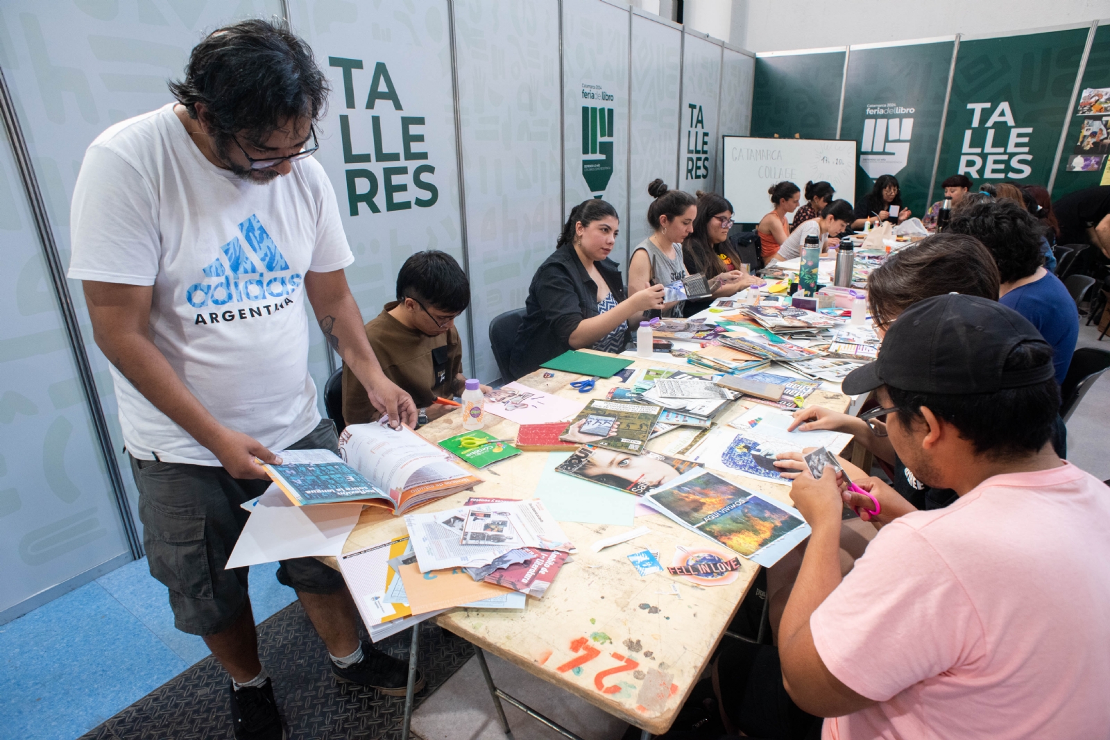 “Siempre tratamos de explorar la situación, el espíritu de la gente, y hoy en el contexto de la Feria del Libro propusimos que el disparador sea el libro, la lectura, la escritura de algún autor, algún personaje o una novela, incluso puede ser que usemos de base una página, una fotocopia, una hoja rota de un libro que encontramos”, contó sobre el taller que mantuvo cautivos, entre tijeras y papeles, a cerca de 20 jóvenes y adolescentes.