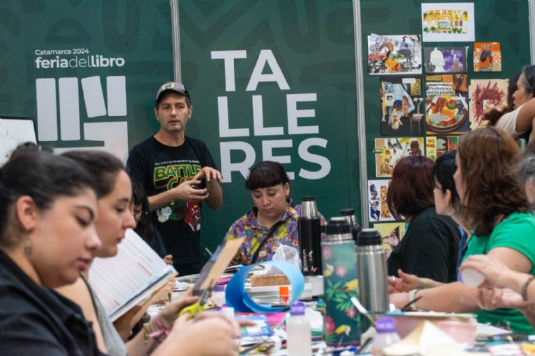 Por otra parte, en el Espacio Talleres se llevó a cabo la Juntada de Catamarca Collage Club @catamarcacollageclub organizada por el artista visual Dimas Melfi, que comentó que esta iniciativa se viene realizando el segundo sábado de cada mes: “Estoy coordinando este encuentro que, como el nombre lo dice, nos dedicamos a hacer collage, a practicar, a explorar. Las primeras veces fueron en un café céntrico, y en los últimos encuentros en el archivo provincial, gracias al Ministerio que nos abrió las puertas para que podamos disponer de la sala de lectura, un lugar ideal, donde podemos compartir de una manera más conjunta”.