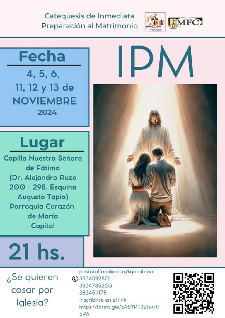 Los encuentros se realizarán del 4 al 6 y del 11 al 13 de noviembre, a las 21.00, en el salón de la capilla Nuestra Señora de Fátima, ubicada en el barrio General Paz, jurisdicción de la parroquia Inmaculado Corazón de María.