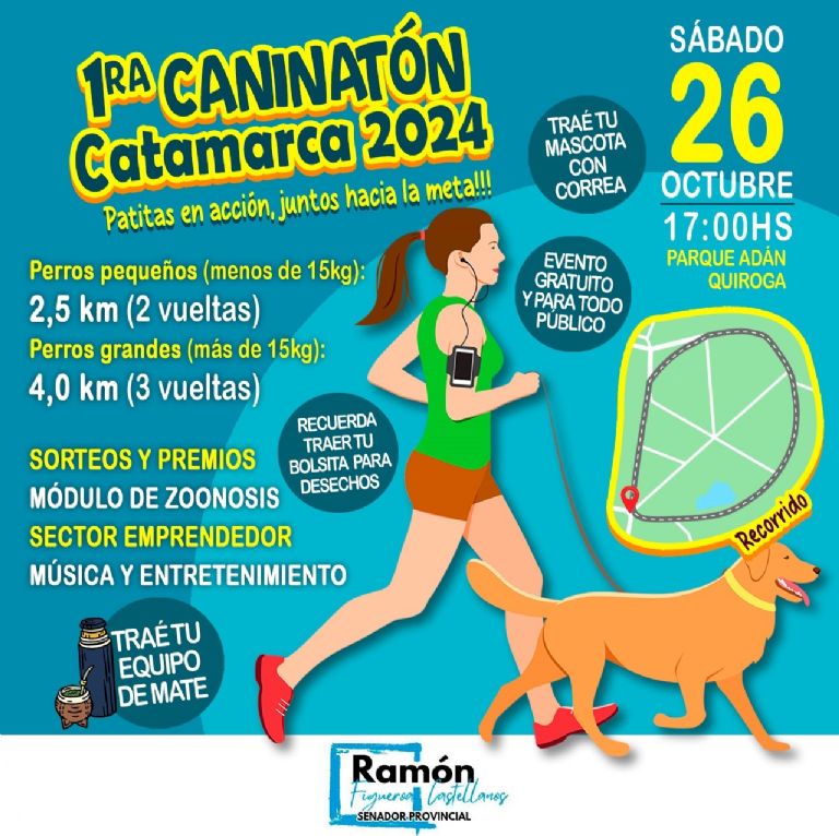 Este sábado a las 17:00 en el Parque Adán Quiroga se realizará la 1era “Caninatón de San Fernando del Valle de Catamarca", organizada desde el Senado por el legislador por la Capital, Ramón Figueroa Castellanos, y su equipo de trabajo, junto a diversos organismos públicos.