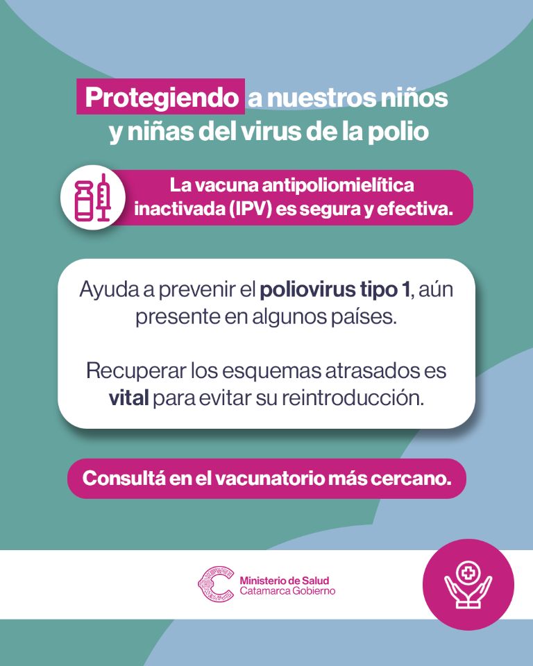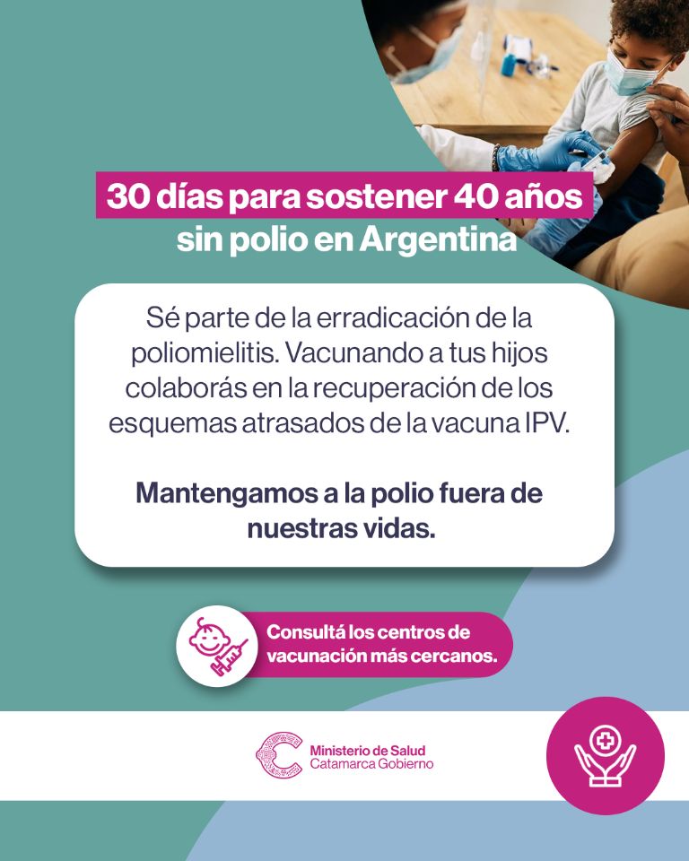 Bajo el lema “Octubre, mes del trabajo intensivo contra la polio: 30 días para sostener 40 años sin polio en Argentina”, hasta el 30 de octubre, el Programa ampliado de inmunizaciones (PAI) realizará control de Libretas Sanitarias para completar esquemas atrasados y aplicar vacunas a niños desde los 2 meses y hasta los 6 años, en barrios de la zona norte y sur de la Capital, tanto por la mañana como por la tarde.
