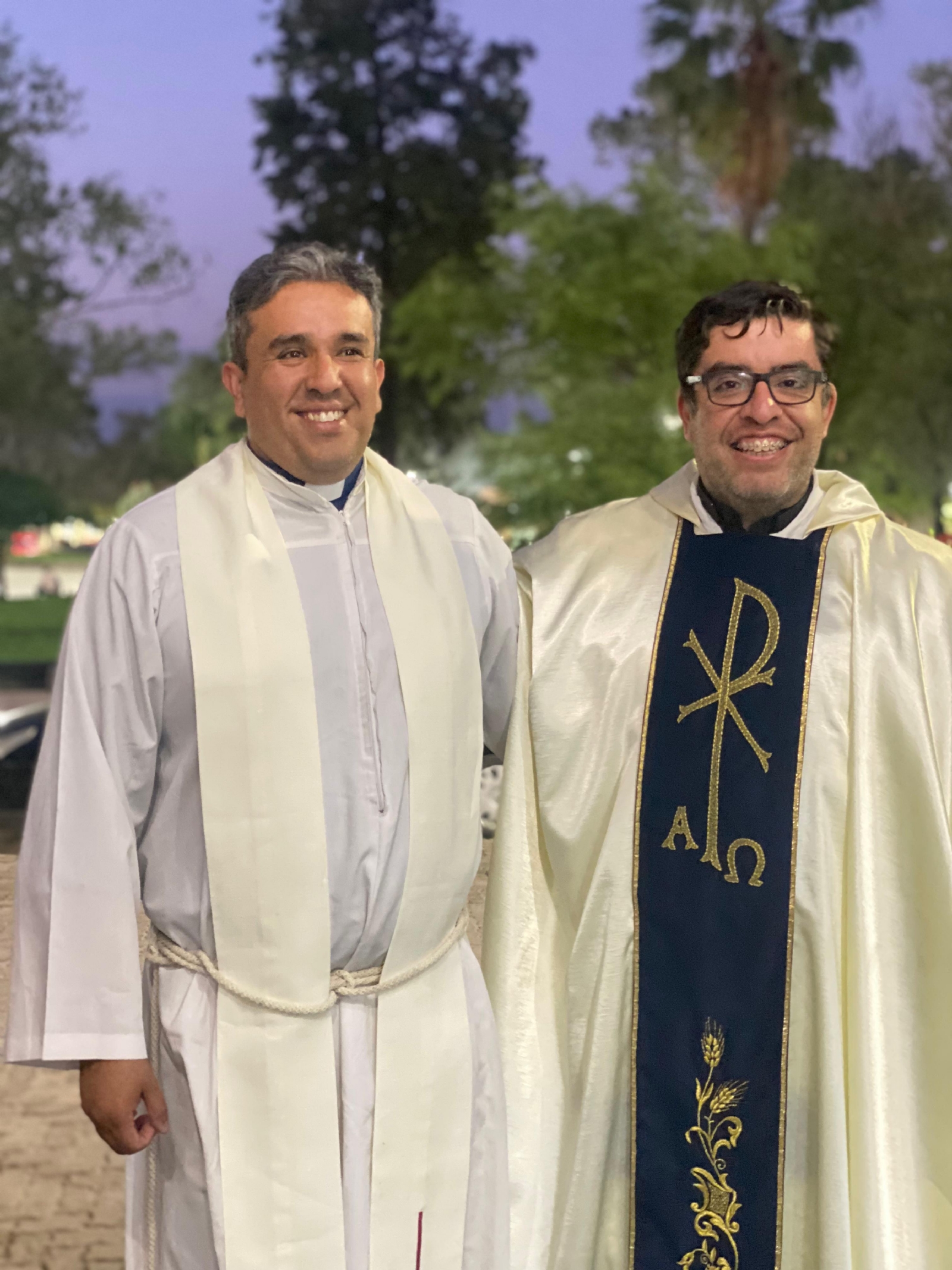 Al finalizar la ceremonia litúrgica, los padres Facundo y Eduardo recibieron el afecto de los presentes y luego compartieron un brindis fraterno.