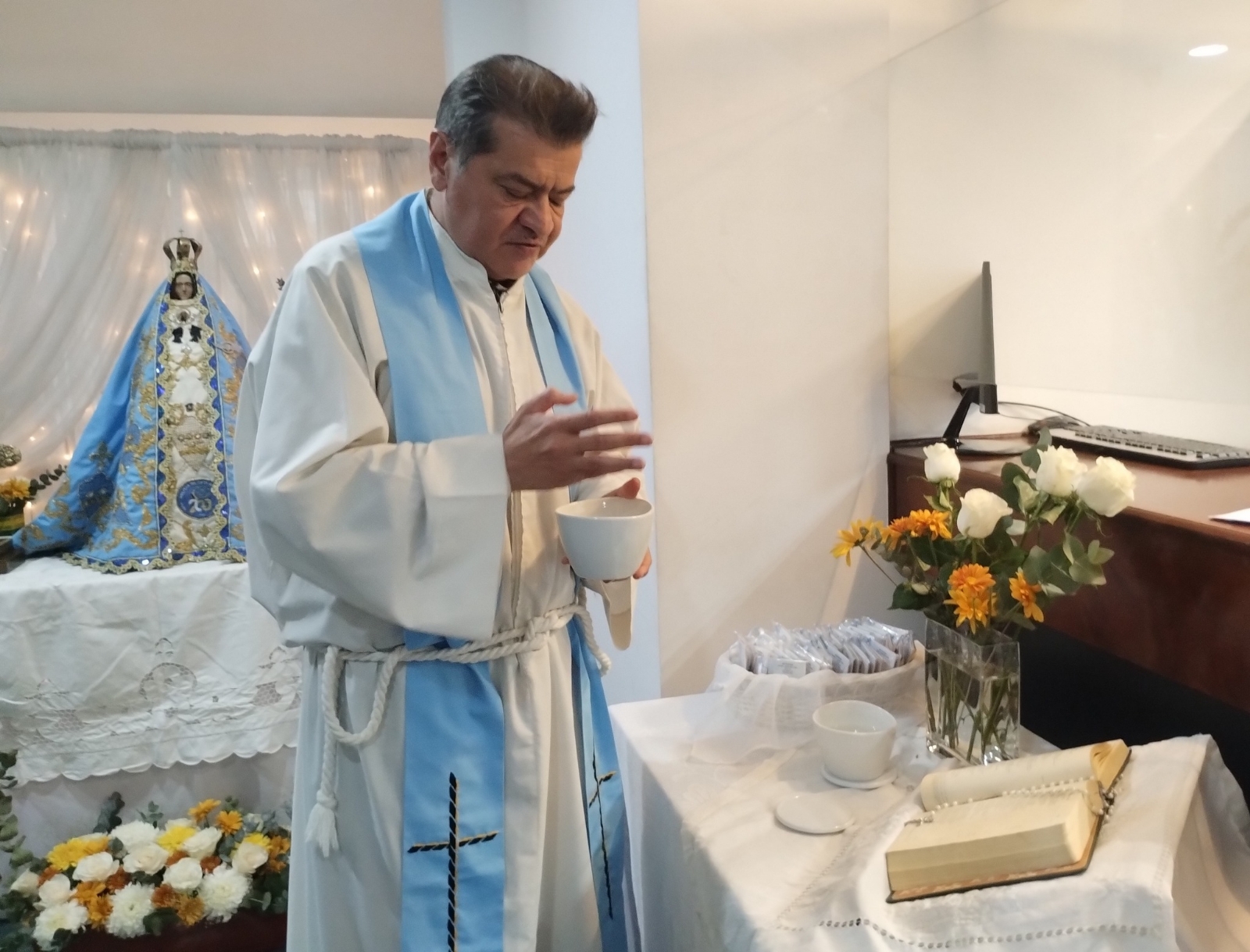 En un espacio preparado especialmente para esta ocasión especial, en el que se destaca el altar donde fue colocada la Sagrada Imagen y otro con la Palabra de Dios, quienes allí se desempeñan le dieron la bienvenida con cantos de alabanza a la Madre Morenita.