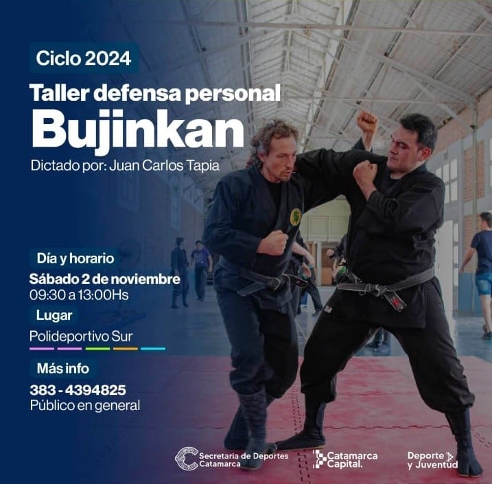 El próximo sábado 2 de noviembre, el Polideportivo Sur "Ramón Quiebra Castillo" será el escenario de un importante taller de defensa personal Bujinkan, organizado por la Subsecretaría de Deporte y Juventud de la Municipalidad de la Capital. El objetivo de esta capacitación es proporcionar a los participantes herramientas fundamentales para su seguridad personal.