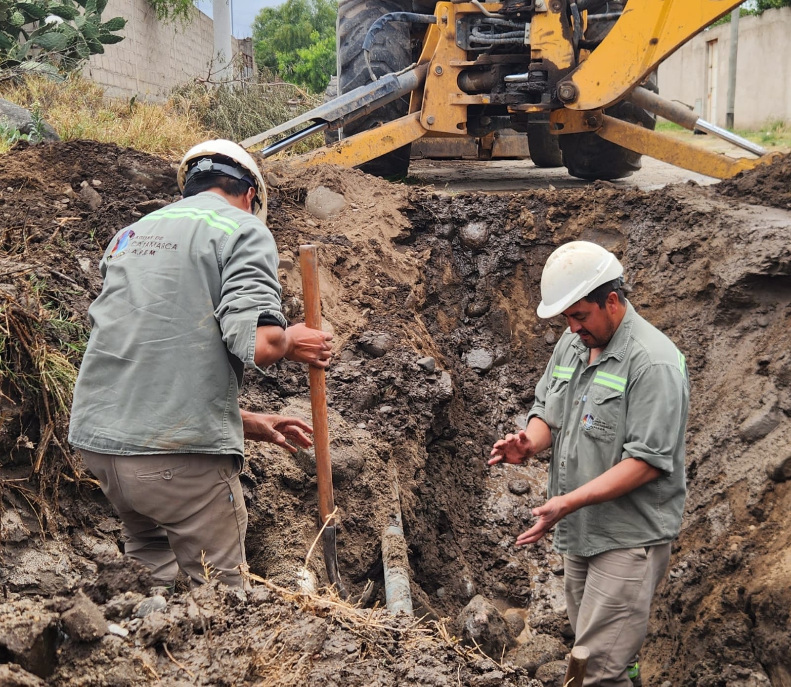 Aguas de Catamarca informa que trabaja en la reparación de la cañería de impulsión de 400 mm PRFV sobre una salida tangencial de diámetro 110 pvc que del denominado rebombeo Sal Gema, por estas reparaciones deberán detenerse los pozos 61, 62 y 64.