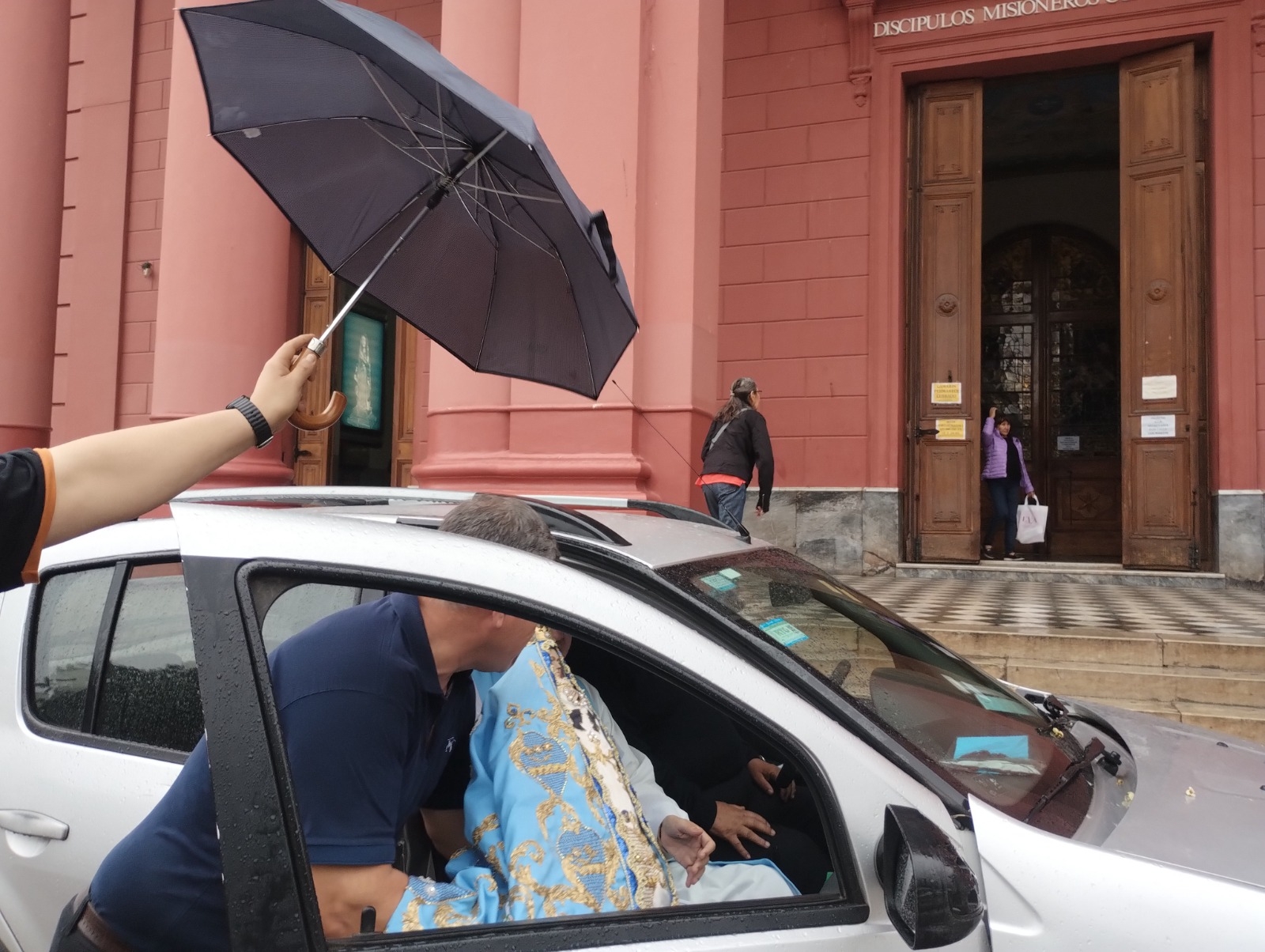 La Sagrada Imagen partió desde la Catedral Basílica bajo la llovizna que caía durante la mañana en San Fernando del Valle de Catamarca, en brazos del padre Luis Páez, capellán del Santuario.