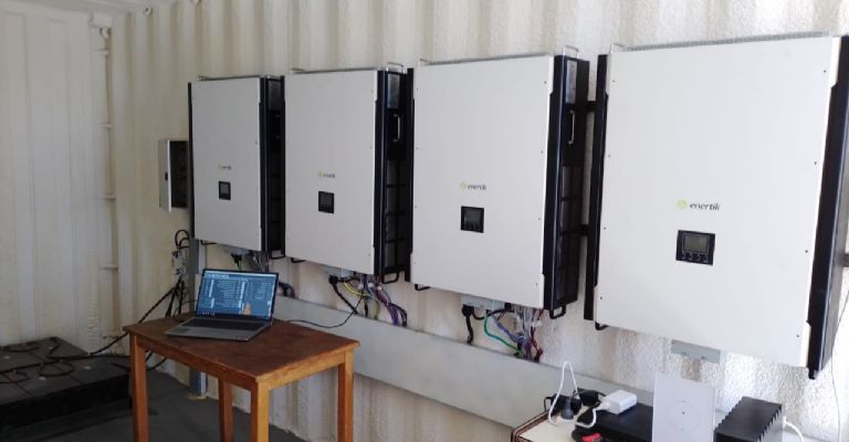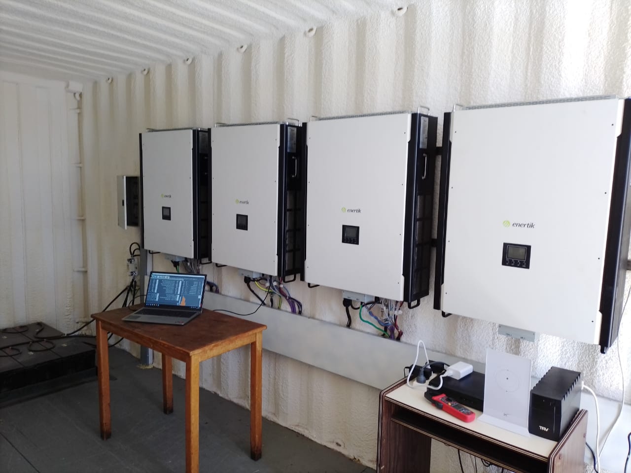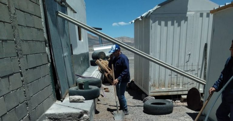 Adicionalmente, se efectuó mantenimiento al sistema fotovoltaico instalado oportunamente por personal de la secretaria de Energía, incluyendo el reemplazo de un inversor dañado y la calibración de los parámetros operativos, restaurando así la autonomía y potencia original del sistema.