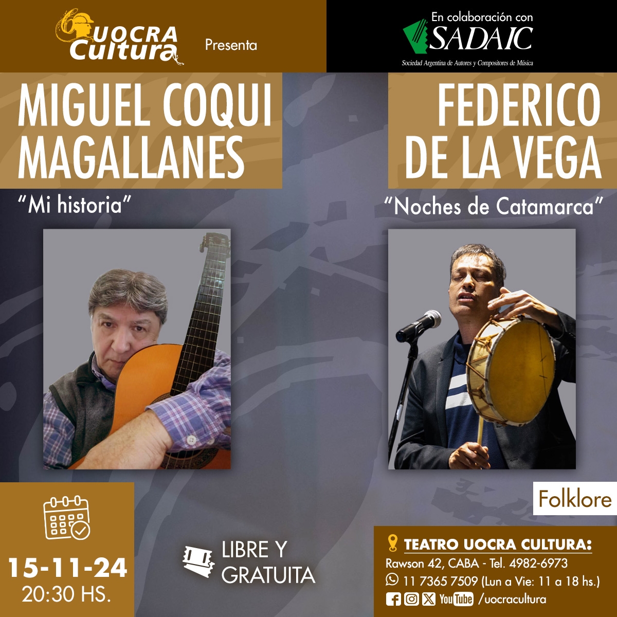Con una banda formada por los prestigiosos músicos: Osvaldo Mendelsohn y Cristian Alderete en Guitarras, junto a Hernán Harros en percusión, de la Vega se presentará el 10 de noviembre en un evento Buenos Aires canta en Av. De Mayo; el 15 de noviembre en el Auditorio Gastón Barral de UOCRA, Rawson 42 CABA, compartiendo escenario con Coqui Magallanes y el 29 de mismo mes se presentará en La Paila con unos invitados de lujo: Julio Lacarra y la catamarqueña Leticia Aranda.