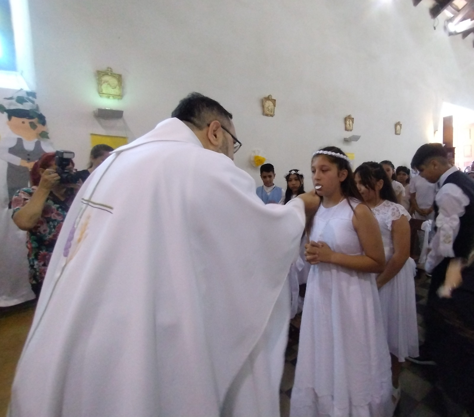 En distintos momentos de la ceremonia litúrgica, los chicos proclamaron la Palabra de Dios; fueron presentados por su catequista Ana López; renovaron las promesas bautismales; acercaron los dones del pan y del vino convertidos luego en el Cuerpo y la Sangre de Cristo, que recibieron primera vez en las dos especies.