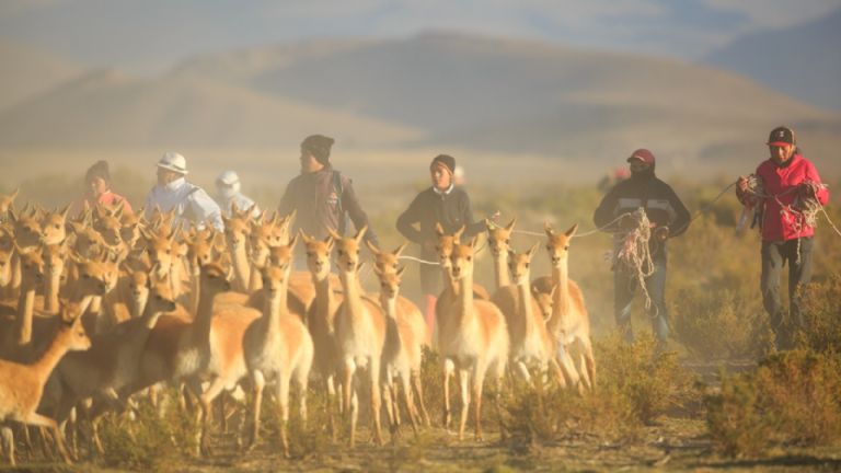 Para evitar la caza furtiva, cada año en el mes de noviembre se realiza el chaku, una práctica comunitaria y sustentable por la cual se esquila a las vicuñas y se las devuelve a la silvestría. La fibra que se obtiene se usa para tejer finísimos textiles.