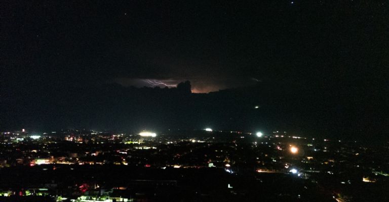Foto 2: Imagen de la tormenta durante la noche del miércoles tomada con un Drone... mirando hacia el Este (Portezuelo).