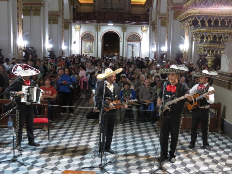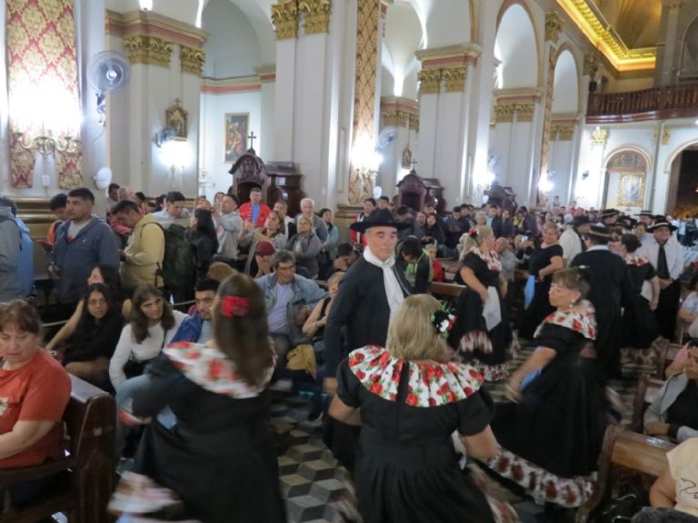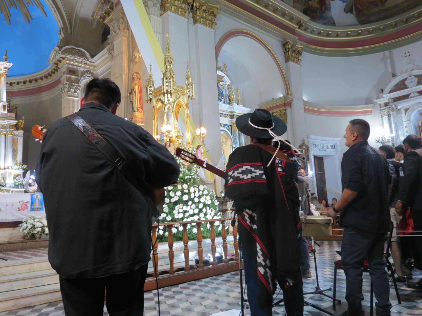 La ceremonia comenzó con la Misa Criolla, interpretada por el ensamble musical y coral Cantoría del Valle, seguida de un repertorio de homenajes folclóricos que emocionó a los presentes. Rubén Moreno, acompañado por el ballet Esencias Gauchas, cantó a la Virgen mientras los acordes de su guitarra se entrelazaban con las danzas nativas. La zamba "Paisaje de Catamarca" y "Virgen Morenita" fueron interpretadas por Mingo Aguirre y Beto Arroyo, con el público cantando al unísono.
