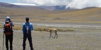 En la segunda jornada asumimos el reto de la “alta montaña”, subiendo al volcán Bertrand, de 5.284 msnm, que afrontamos caminando desde el mismo refugio, sin la posibilidad de una aproximación en vehículo, porque el nuestro había sufrido la pinchadura de un neumático.