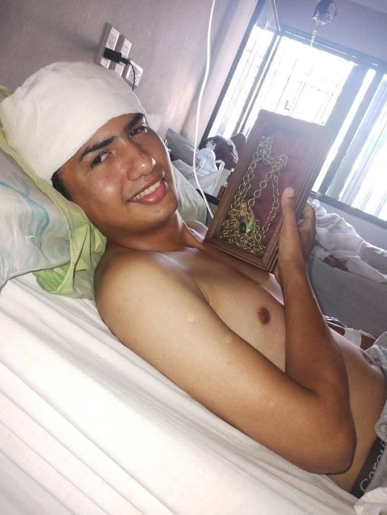 Este jueves, a una semana del brutal ataque, una fotografía del emprendedor con la cadena de la Virgen del Valle circuló en las redes sociales. Fuente Radio Valle Viejo