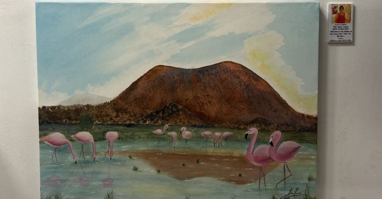 A través de una paleta cálida y serena, la obra combina texturas que evocan la fuerza del paisaje volcánico y la delicadeza de la fauna local, invitando a reflexionar sobre la preservación de los ecosistemas del noroeste argentino.