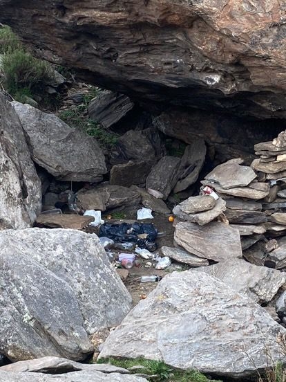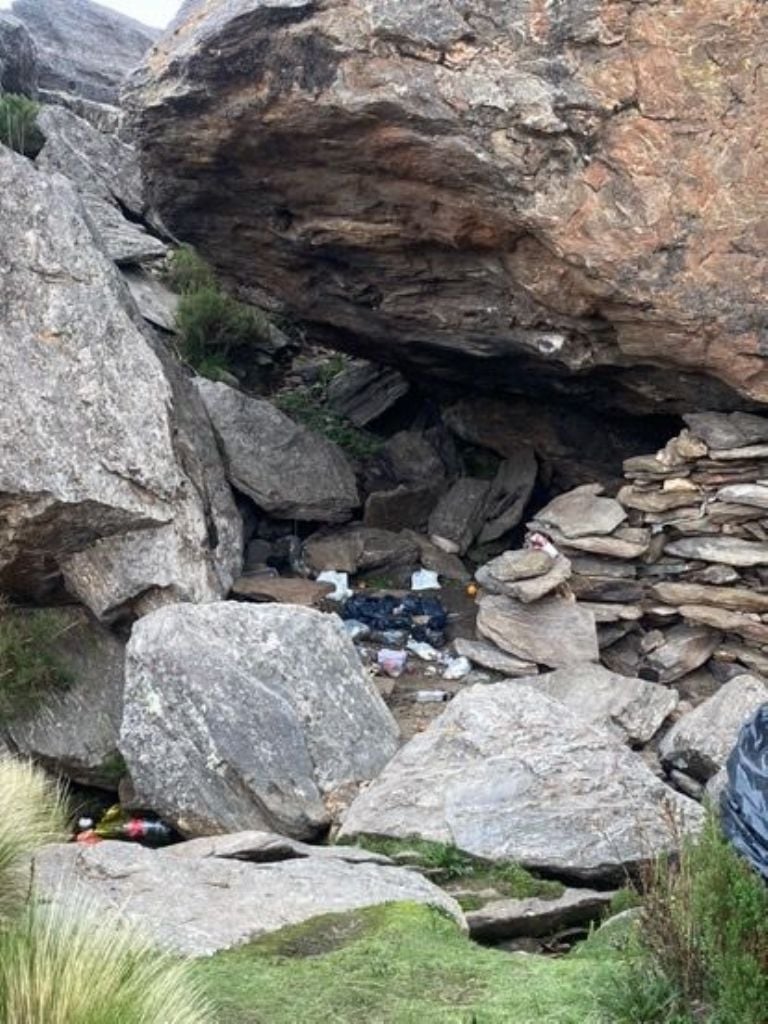 En una reciente subida al cerro, un visitante se encontró con un escenario lamentable en El Manchao, un lugar que se supone debe ser un sitio de descanso y disfrute del paisaje, pero que estaba cubierto por basura: botellas de bebidas alcohólicas, envoltorios y desechos esparcidos por todo el lugar.