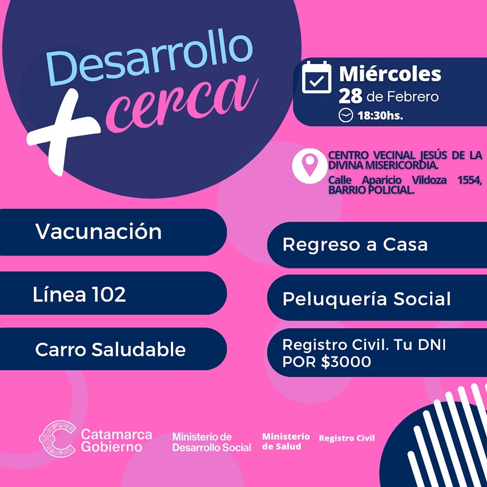 Esta nueva iniciativa propone llevar a este Barrio de Capital actividades del Ministerio de Desarrollo Social como es la Línea 102, Regreso a Casa, Peluquería Social, Carro Saludable entre otras.