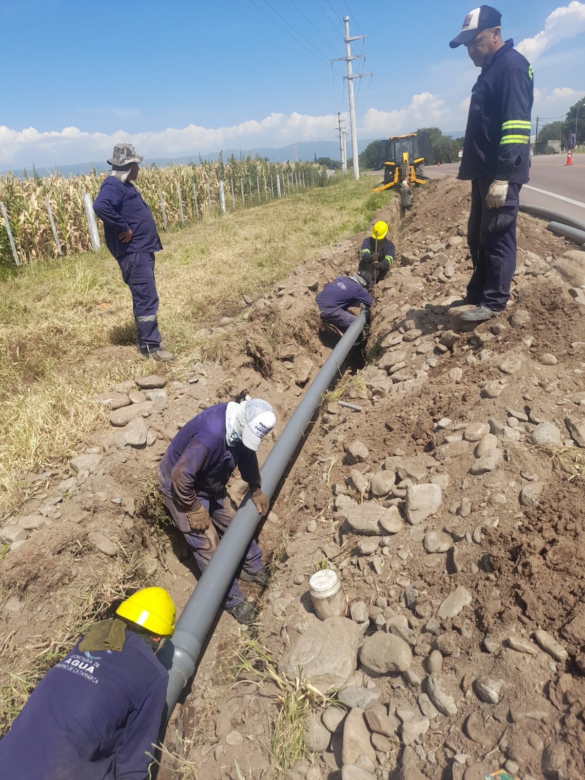 Personal perteneciente a la secretaria de Agua y Recursos Hídricos y de logística del ministerio de Agua, Energía y Medio Ambiente a cargo de Eduardo Niederle, trabajaron en la ejecución de 1100 metros de acueducto de 160mm de diámetro para completar un total de 9300 metros que beneficiará a toda la zona sur de la localidad de Los Altos, en especial el barrio Obrero y el barrio San Isidro.