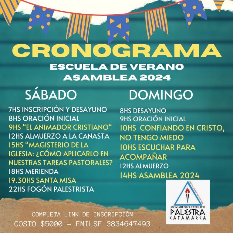 Asimismo, detalló que el sábado por la mañana habrá una charla sobre la animación, a cargo del profesor Eduardo Ontivero, que se complementará con el trabajo en un taller. Y por la tarde, el padre Eugenio se referirá al Magisterio de la Iglesia y cómo aplicarlo en las tareas pastorales del movimiento.
