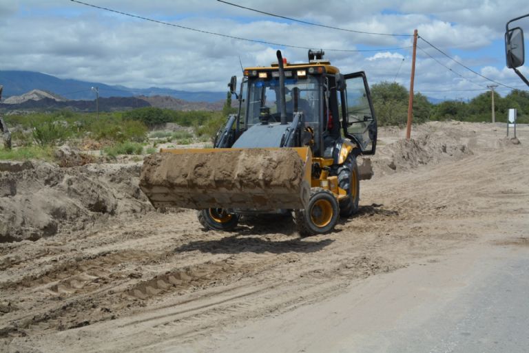 Personal y equipos de la Sobrestantía Santa María completó hoy los trabajos de limpieza de calzada en badenes, que debido a las lluvias registradas entre la noche de ayer y las primeras horas de hoy produjeron las crecidas de varios ríos, con arrastre de material aluvional.