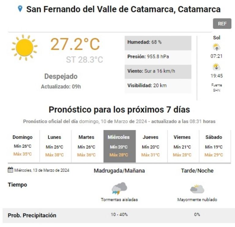 Superado ese período, se observa un descenso a partir del miércoles y el termómetro no superaría los 28°, aportando así un poco de alivio en el último tramo del verano. Asimismo, se anticipa entre un 10 y un 40% de probabilidades de tormentas.