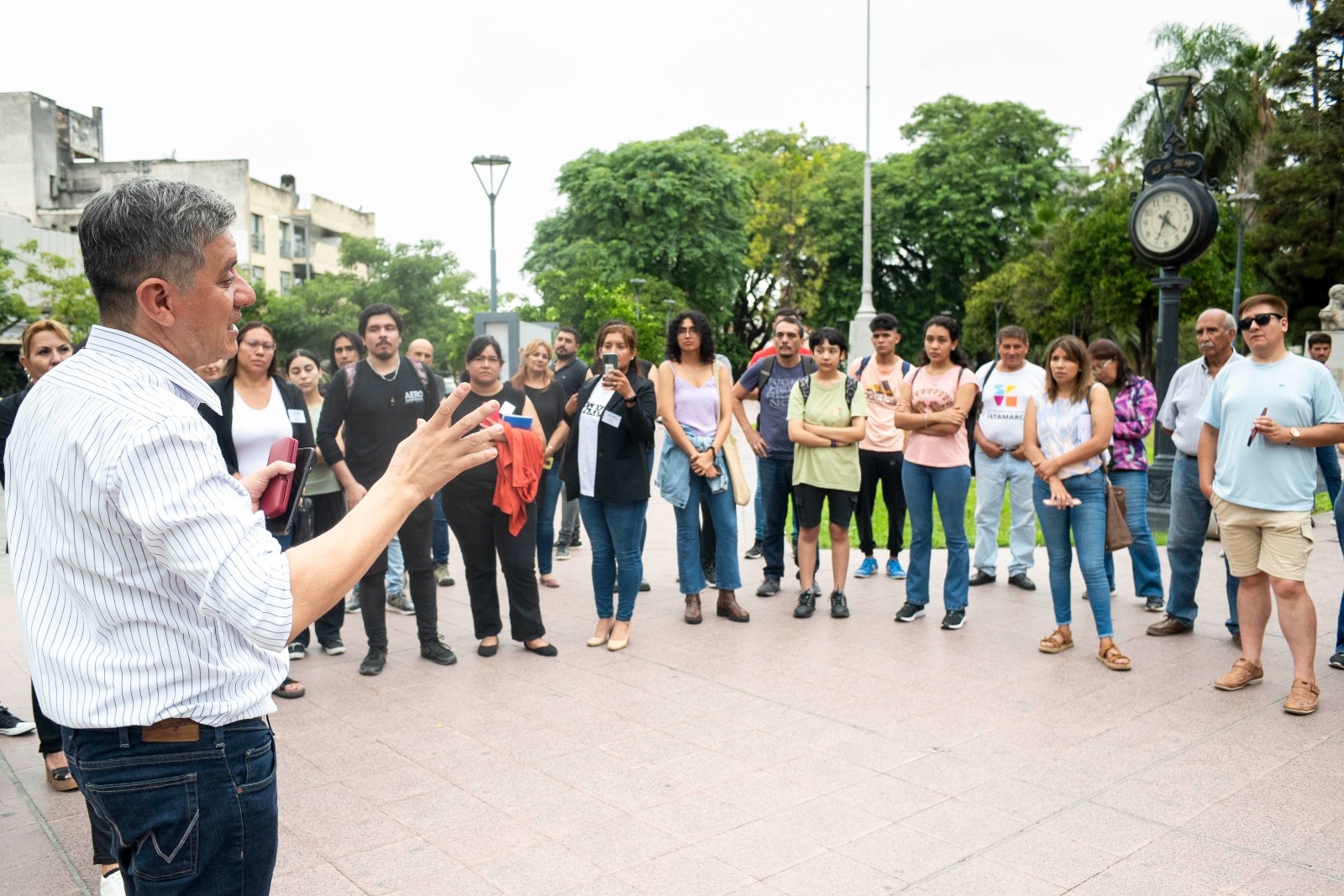 El punto de encuentro fue la Casa de la Cultura, donde se congregaron personal de los museos provinciales, guías de la Casa Histórica de Gobierno, estudiantes de primer año de la Escuela de Arqueología y público que se sumó espontáneamente.