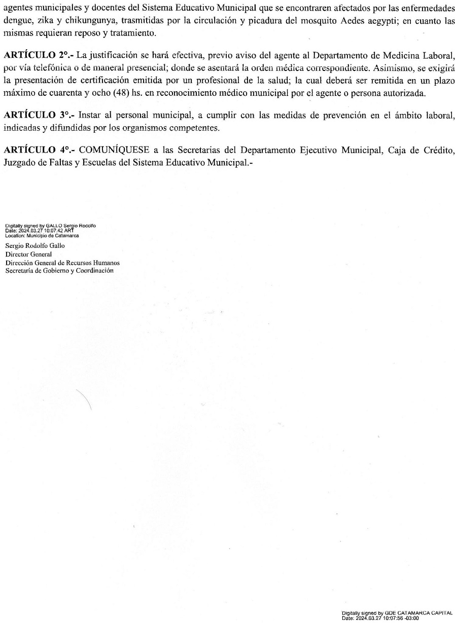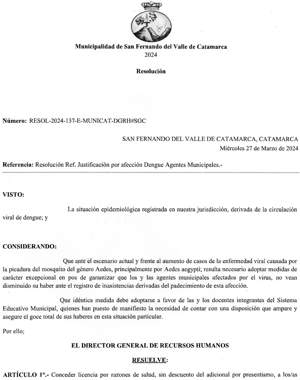 "El SOEM informa que, a través de la gestión de esta entidad sindical y a raíz de la demanda de los trabajadores, se gestionó la autorización de la licencia especial para aquellos que cursan la patologías producidas por el virus del dengue, zika y chikungunya. También informa que a los agentes que estuvieron afectados por estos virus y debidamente justificados, se les hará la devolución de los montos descontados por presentismo. El presente decreto también abarca a los docentes del Sistema Educativo Municipal", expresa un comunicado del gremio SOEM.