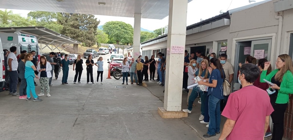 En el Hospital de Urgencias San Juan Baustista hoy a la mañana se concretó una protesta por parte de trabajadores que reclamaron por una justa remuneración salarial que les permita, acaso, no perder contra la inflación.