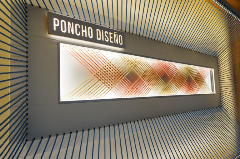 En el espacio Poncho Diseño los hilos y el telar, presentados con materiales industrializados, conectan a través de bastidores de madera la creatividad de diseñadores y diseñadoras que ofrecerán al público prendas de vestir y calzado en fibras naturales, sintéticas y de cuero, carteras y mucho más.