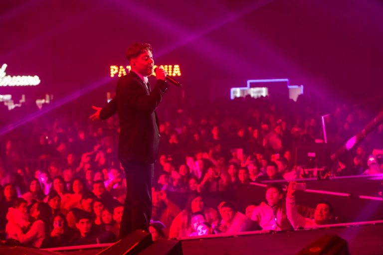 Promediando la noche, arribó al escenario mayor y realizó su debut en el Poncho Emanero, que entregó sus principales canciones en rap y música urbana en un gran concierto. Siempre con su traje impecable, hizo un recorrido por un setlist de casi veinte composiciones. La noche comenzó con “Bandido”, la primera canción que es parte de su proyecto Runflas, para luego continuar, entre otras, con “Adicto” y “Nunca me Faltes”. El show avanzó y se acercaba el fin, pero no podía terminar sin que sonara el himno que aguardaban todos los presentes. El público dejó las últimas energías cuando comenzaron los primeros acordes de “Fama de Diabla”, esa versión que ya alcanzó más de veinte millones de reproducciones en Youtube.