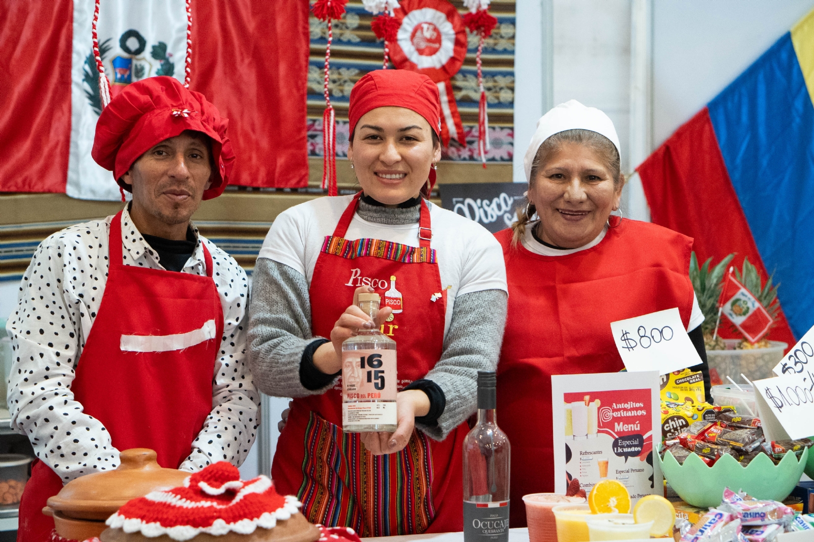 Brasil también dijo presente con sus clásicas caipirinha y caipiroska. Y en comida ofrecen coxinha de pollo, y los dulces típicos como brigadeiro, bizcochuelos de zanahoria y de guayaba, y pacoquinha.