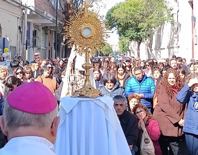 El ingreso de la imagen de María Reina de las Misiones dio apertura a la fiesta, que se vivió en la capilla del Colegio del Carmen y San José. El rezo del Santo Rosario Misionero, a cargo de la Pastoral Misionera Diocesana, preparó los corazones para la celebración de la Santa Misa presidida por el obispo diocesano, Mons. Luis Urbanc, quien también acompañó la procesión por las calles de ese sector del casco céntrico.