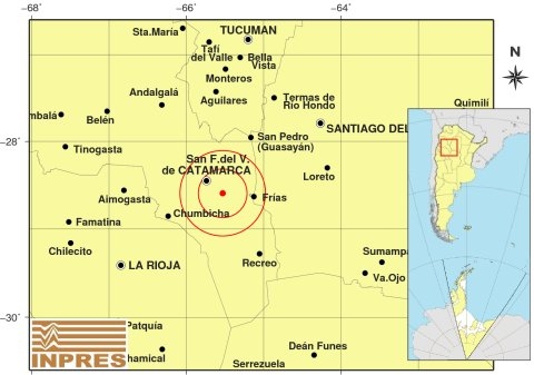 Epicentro: 60 km al S de Andalgalá; 62 km al NE de Aimogasta; 76 km al SE de Belén -28.104 (lat) -66.445 (long)