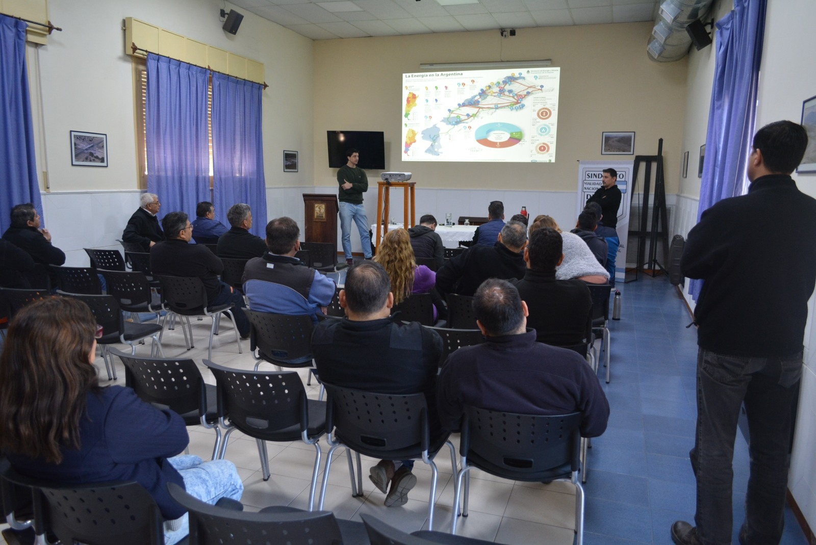 Del evento, del que participó personal de distintas áreas de la repartición, tuvo lugar en el salón auditorio de la sede distrital y estuvo a cargo del ingeniero Ariel Vázquez y del técnico Alberto Farre, quienes explicaron que la capacitación tiene por objetivo la “sensibilización sobre el uso responsable de la energía”, tanto en el ámbito laboral como privado.