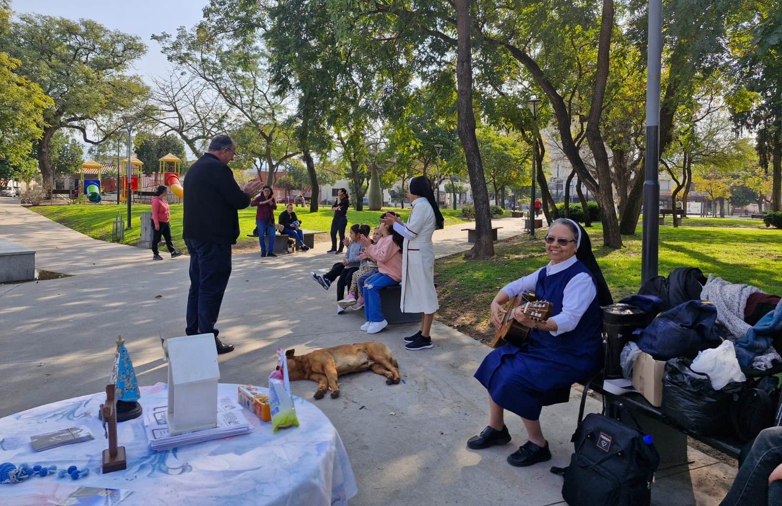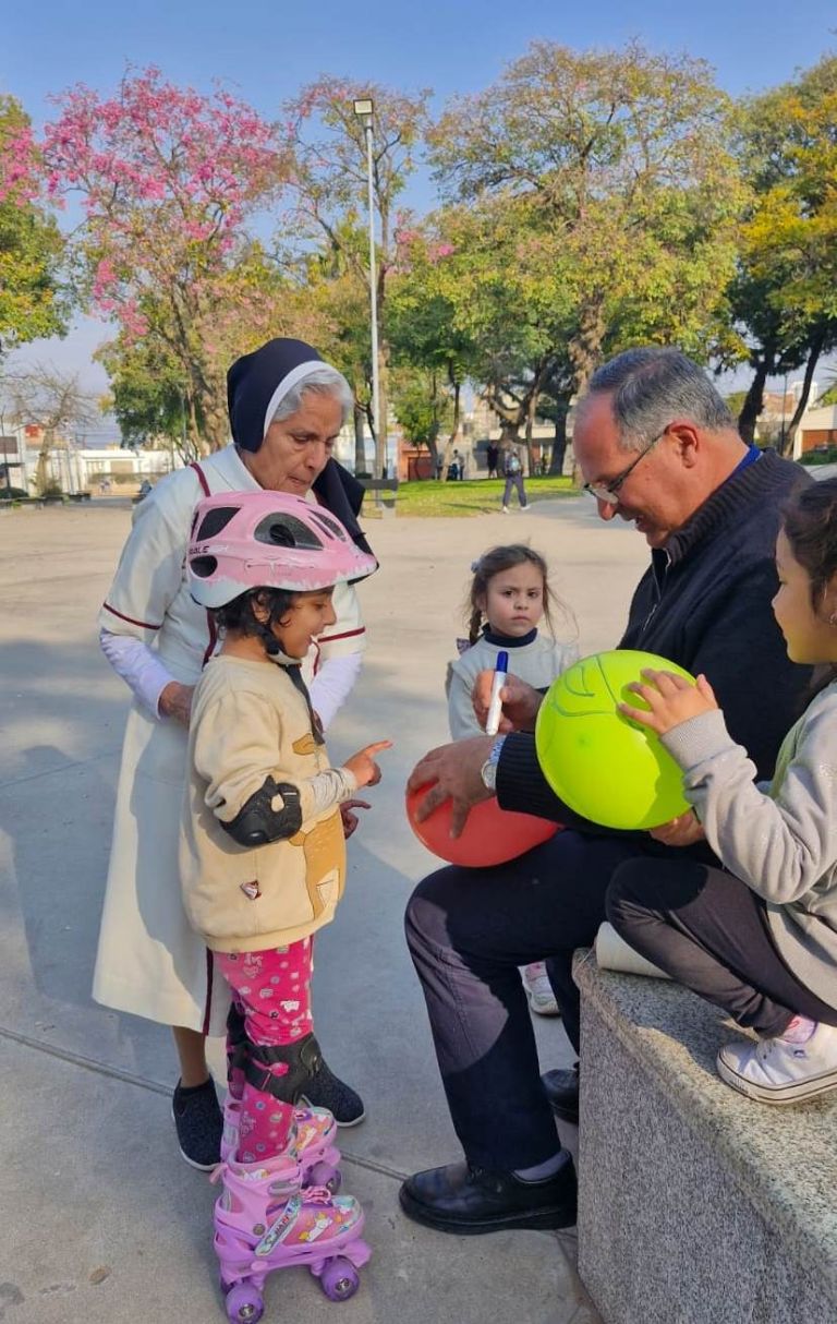 Durante la tarde dominical, los religiosas y religiosos participantes del encuentro del NOA llegaron a distintos espacios verdes de la ciudad, para realizar una misión compartiendo con la comunidad catamarqueña el amor de Dios. Lo hicieron especialmente con los niños que celebraron su día en esa jornada.