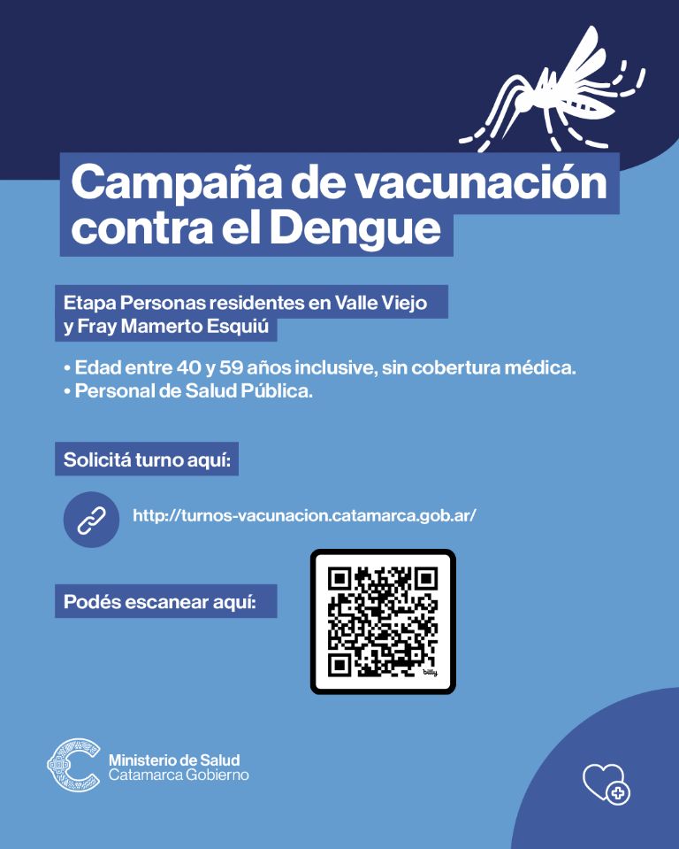 El propósito de la campaña es inmunizar a la población objetivo, con el fin de disminuir la morbimortalidad por Dengue en Catamarca.
