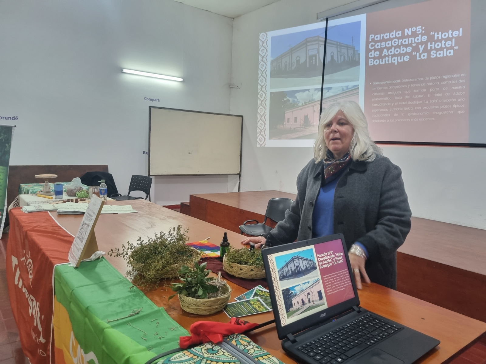 En Santa María se llevó a cabo el 22 y 23 de agosto en el Punto Digital, Complejo El Mirador. El ejercicio sensorial se realizó con el sentido del olfato y los participantes divididos en grupos diseñaron experiencias turísticas vinculadas con sus aromáticas, como el pimentón, comino, orégano, anís y yuyitos para turistas que viajan en familia, en grupos de amigos o en pareja.