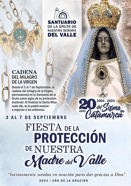Desde el 3 al 7 de septiembre, la Cadena del milagro de la Virgen permanecerá en el Santuario de la Gruta de la Virgen del Valle como signo de su protección maternal. Al finalizar la Santa Misa cada día, se la podrá venerar e imponer a los enfermos.