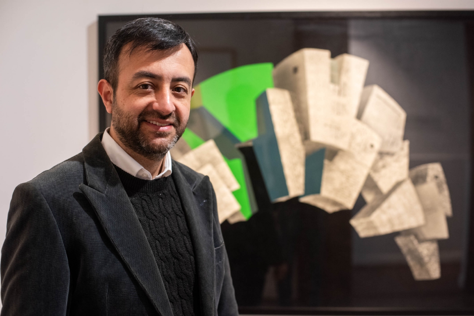 El artista y arquitecto Jerónimo Salvatierra estará presentando los cuadros de la serie Construcciones Paralelas, que expone actualmente en la muestra Diálogos.